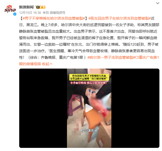 近来,黑龙江哈尔滨中心大街就发生了惊险一幕:一名南边游客因未穿棉裤,在哈尔滨中心大街的寒夜中,腿部静脉曲张血管决裂。民警对其救助时,一边施救,一边道出要害:“在东北,出门有必要穿上棉裤!”